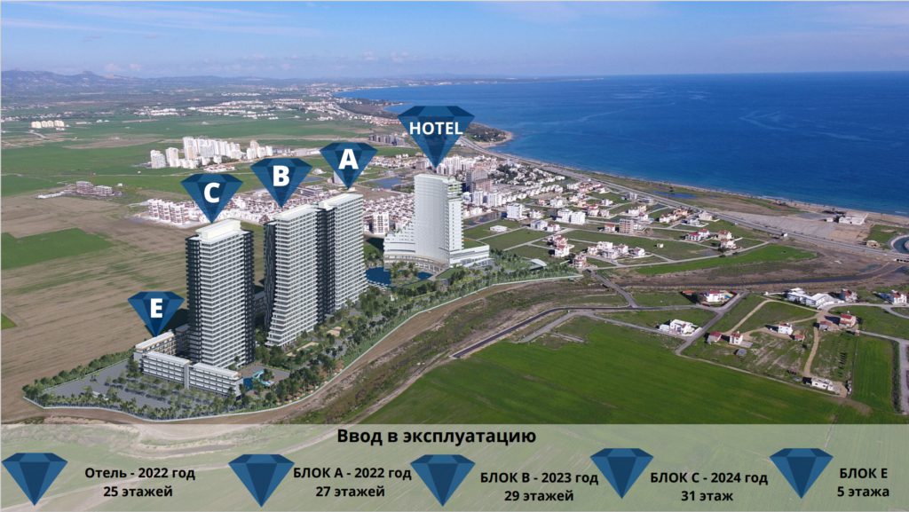 1. Первый жилой блок А 27 этажей, 420 квартир и имеет бассейн и бар на последнем этаже. Сдача в эксплуатацию 2022 год.